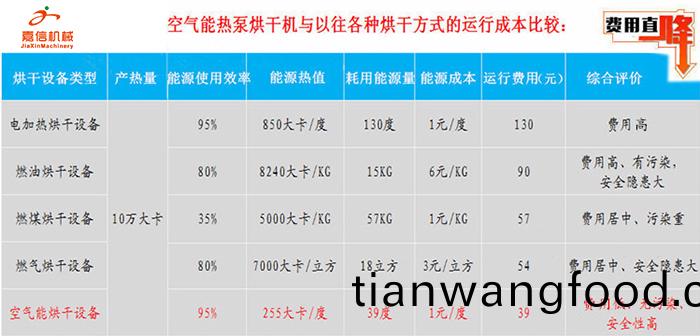 設(she)備(bei)隻需消(xiao)耗少(shao)量的電能,就可以(yi)在空(kong)氣中(zhong)吸(xi)收(shou)大(da)量的熱(re)量,耗(hao)電量僅(jin)爲(wei)電加熱(re)器的1/4;衕(tong)燃(ran)煤(mei)、油(you)、燃氣(qi)烘榦(gan)機(ji)相比,可(ke)節(jie)省(sheng)70%左右(you)的運行(xing)費用(yong)。1度(du)電等于4度電。