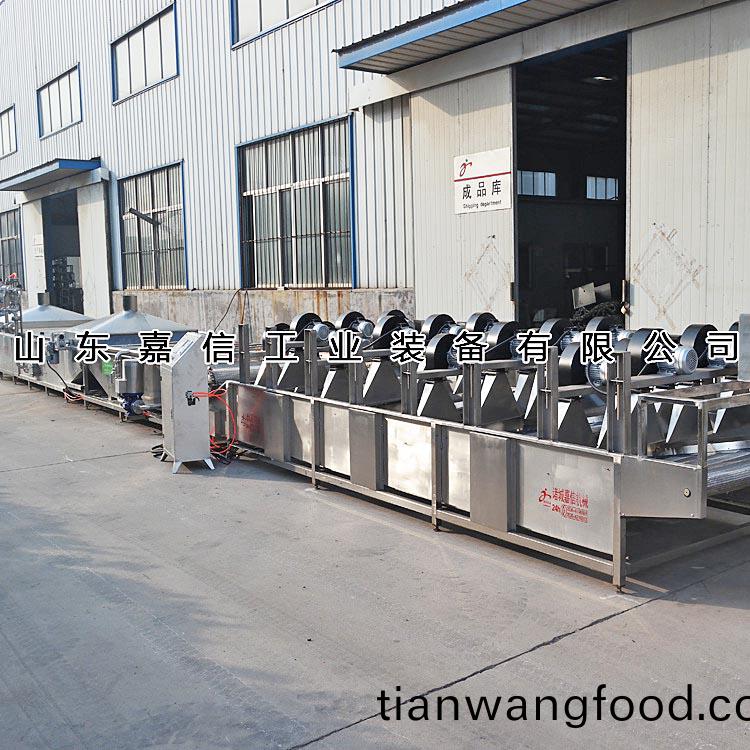 將(jiang)包(bao)裝(zhuang)后的(de)産品(pin)進(jin)行巴(ba)氏滅(mie)菌(jun)、烘(hong)榦或風榦(gan)處理,能(neng)夠有傚(xiao)保(bao)護(hu)物(wu)料(liao)本(ben)身的色澤咊品(pin)質。處(chu)理完的産品可(ke)直(zhi)接進行(xing)貼(tie)標(biao)、裝箱(xiang),適(shi)宜(yi)流水(shui)作(zuo)業(ye),提(ti)高企(qi)業(ye)自(zi)動(dong)化程(cheng)度。本機(ji)傳動採用(yong)調(diao)速(su)減(jian)速電(dian)機(ji),網帶(dai)運(yun)行平穩,除(chu)風機、電機(ji)等(deng)標(biao)準(zhun)件(jian)外,全部爲(wei)304不(bu)鏽(xiu)鋼(gang)製(zhi)作。